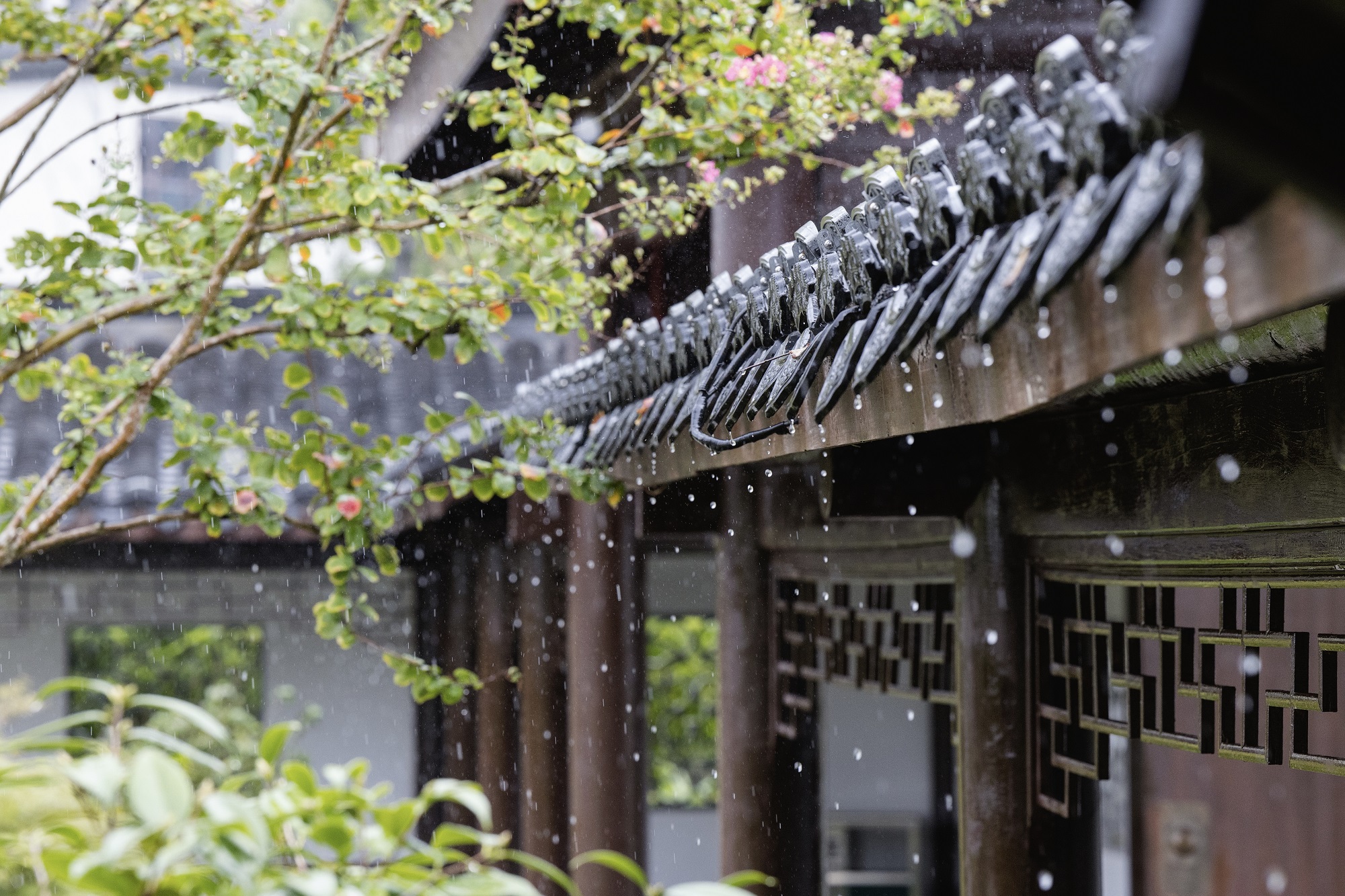 一雷惊蛰起,细雨润庭芳。檐角雨声轻响,清风漫过庭院,草木舒展,万物悄然苏醒,满是温柔春意。(江西省赣州市定南县纪委监委供 张婧 摄)