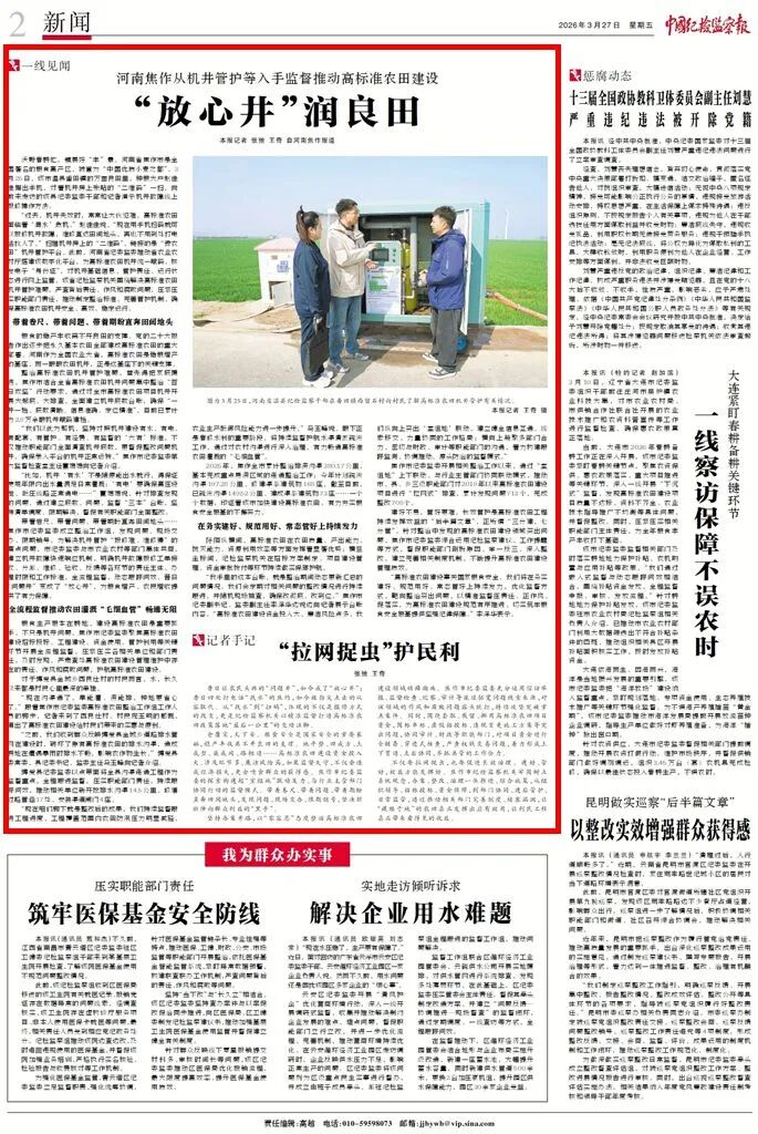 粮食生产根本在耕地,建设高标准农田是重要抓手。不只是机井问题,焦作市纪委监委聚焦高标准农田建设招标投标、工程建设、资金使用、管护利用等关键环节开展全流程监督,压紧压实各相关单位和部门责任,及时发现、严肃查处高标准农田建设管理维护中存在的责任、作风和腐败问题,护航高标准农田建设。