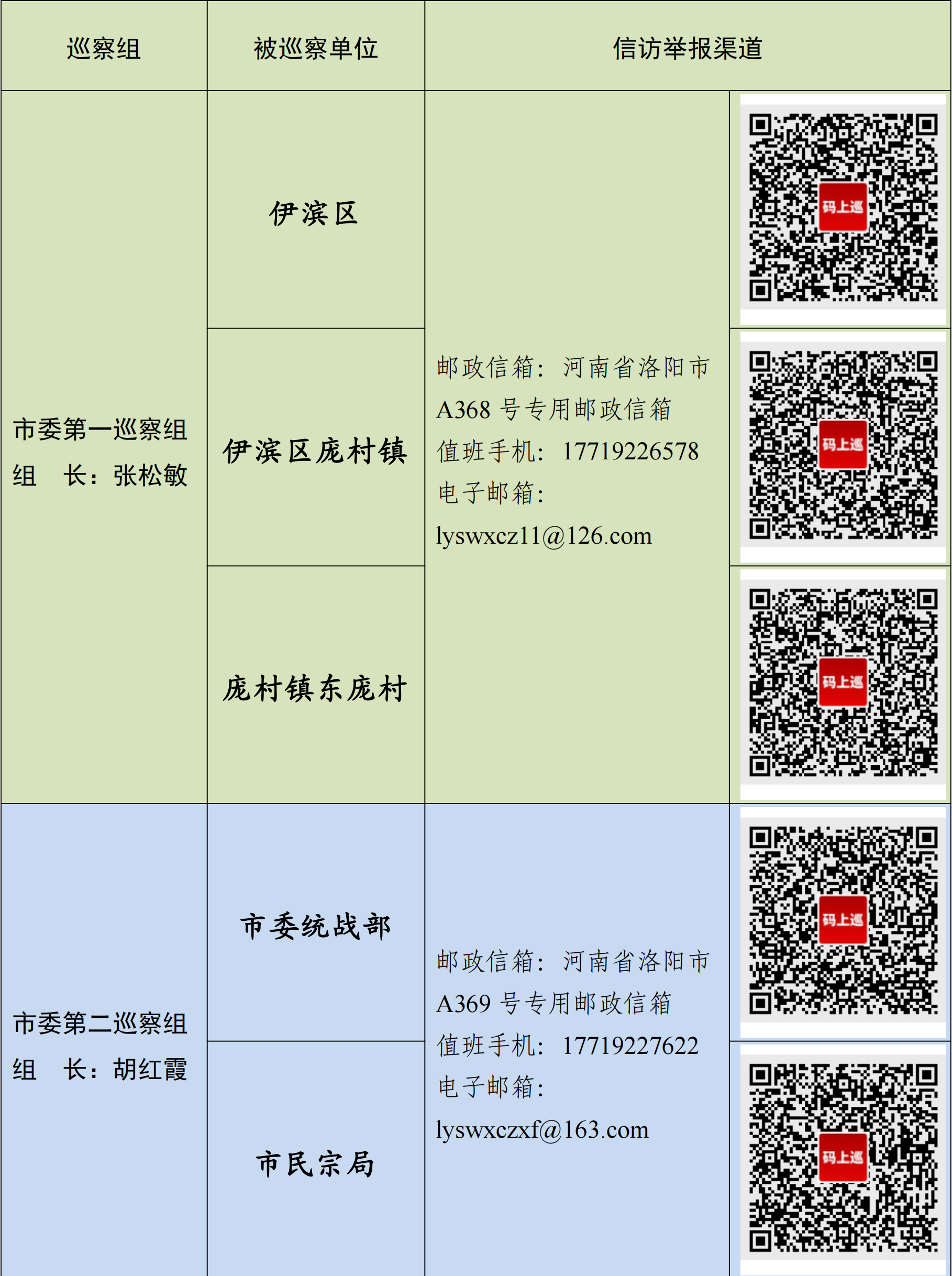 十二届市委第九轮巡察进驻一览表
