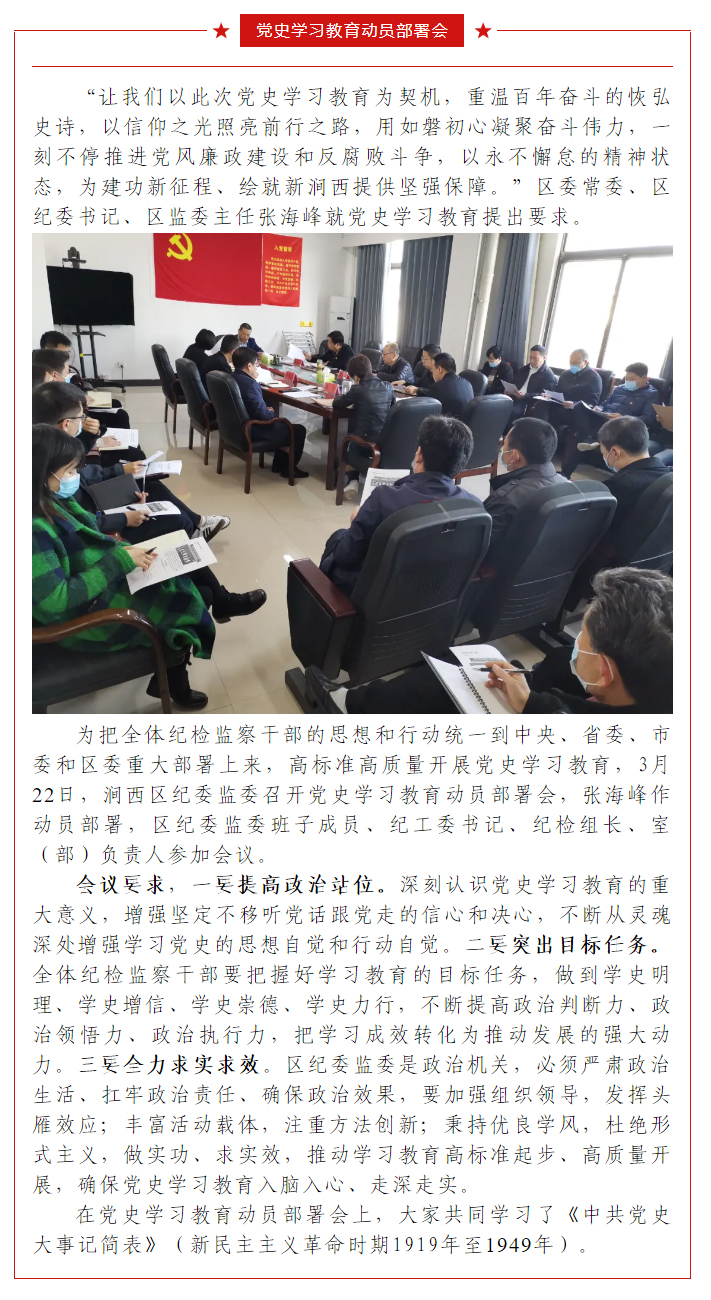 涧西区纪委监委召开党史学习教育动员部署会