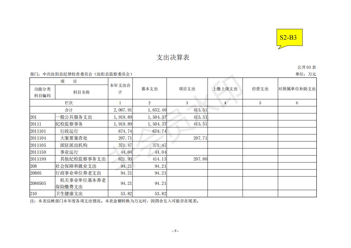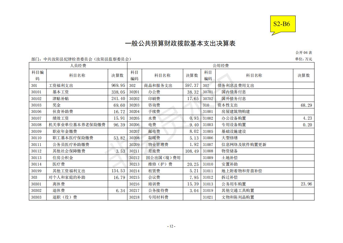 汝阳县纪委监委2020年度决算公开