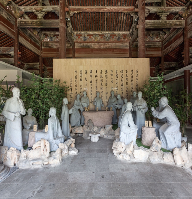 扬州八怪纪念馆中的“扬州八怪”群塑,居于中间位置者为郑板桥。扬州繁荣的经济与文化,为“扬州八怪”的形成提供了基础。扬州八怪纪念馆供图