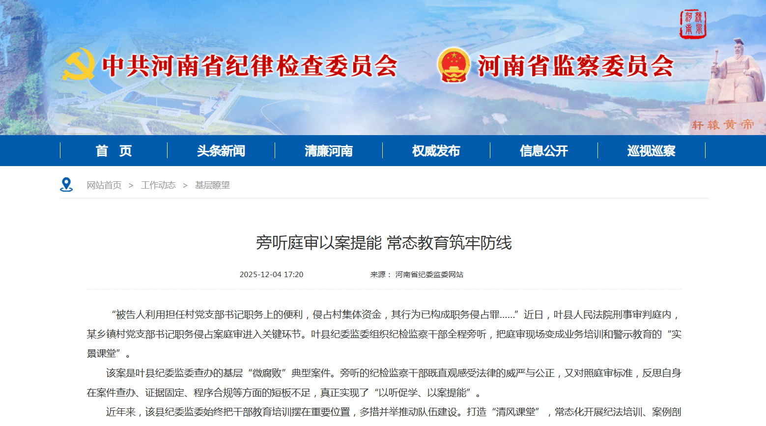 该案是叶县纪委监委查办的基层“微腐败”典型案件。旁听的纪检监察干部既直观感受法律的威严与公正,又对照庭审标准,反思自身在案件查办、证据固定、程序合规等方面的短板不足,真正实现了“以听促学、以案提能”。