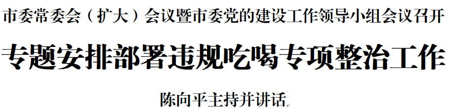 5月15日,市委常委会(扩大)会议暨市委党的建设工作领导小组会议召开。会议深入学习贯彻习近平总书记关于加强党的作风建设的重要论述,传达中央层面深入贯彻中央八项规定精神学习教育工作专班、中央纪委办公厅关于李献林、叶金广等人违规吃喝严重违反中央八项规定精神问题的通报,学习省委常委会会议暨省委党的建设工作领导小组会议、全省违规吃喝专项整治动员部署会精神,专题安排部署违规吃喝专项整治工作。市委书记陈向平主持会议并讲话,市委副书记、市长李明俊出席,市人大常委会主任张明新、市政协主席黄庚倜列席。