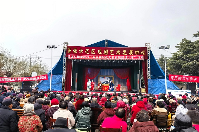 济源示范区纪工委监察工委通过“小分队巡演、轻骑兵送廉”等方式,把廉洁声音送到基层一线,推动廉洁文化接地气、入民心。图为该区在五龙口镇贺坡村开展“梨园唱响清风韵 乡村厚植廉洁风”廉洁戏曲进基层活动。(济源示范区纪工委监察工委 卢春霞 摄)