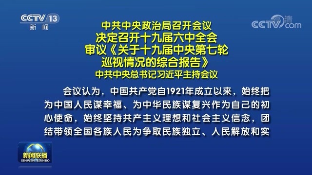 中共中央政治局召开会议 决定召开十九届六中全会...