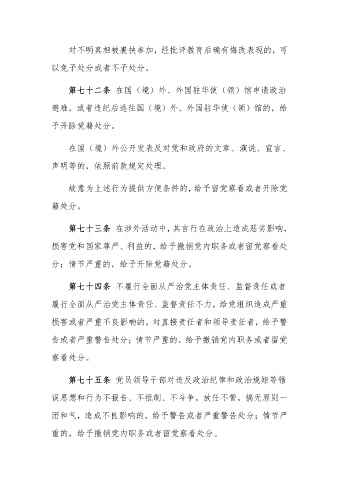 第七十五条 党员领导干部对违反政治纪律和政治规矩等错