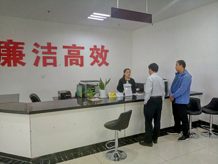 鹤山区纪委监察委对便民服务窗口工作作风进行督查。