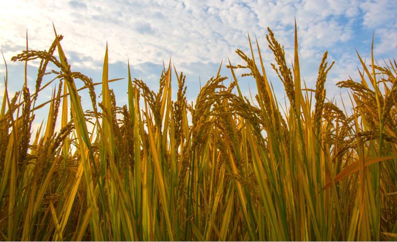 秋分时节,稻谷飘香,金黄的稻谷在田野中摇曳,一派丰收在望景象。
