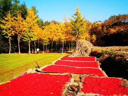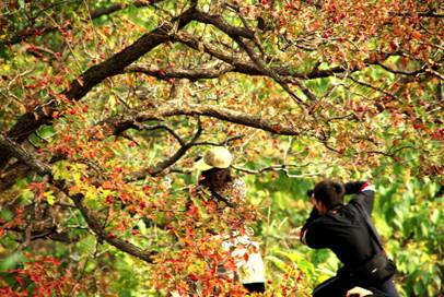 金秋时节,山楂树上玛瑙似的红果,像一个个红色的灯笼挂满枝头,预示着中华儿女红红火火的日子。