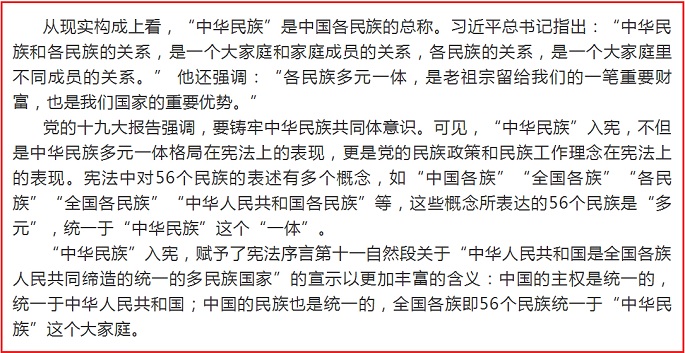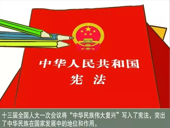 2018年3月11日,十三届全国人大一次会议通过了《中华人民共和国宪法修正案》。从此,宪法序言第七和第十自然段增加了“中华民族伟大复兴”的内容。这是“中华民族”首次写入宪法,具有里程碑式的意义。
