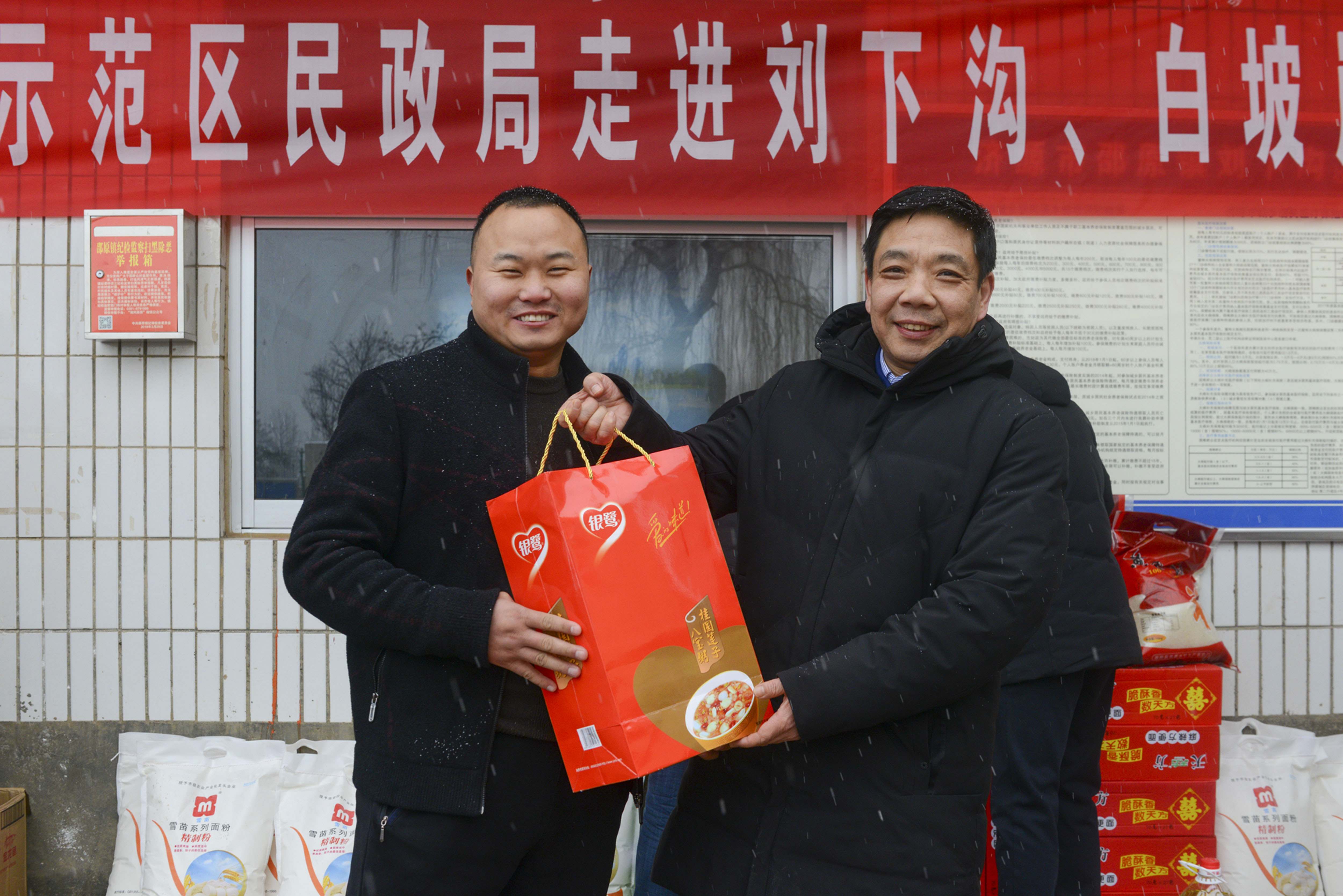 寒冬腊月,示范区西部山区降温明显,1月3日,在今年首场降雪来临之前,示范区民政局党组书记、局长苗春芳,副局长杨长青一行到邵原、下冶、王屋现场发放御寒物资和生活用品,并看望慰问困难群众,在寒冬里为困难群众送去党的温暖和关怀。