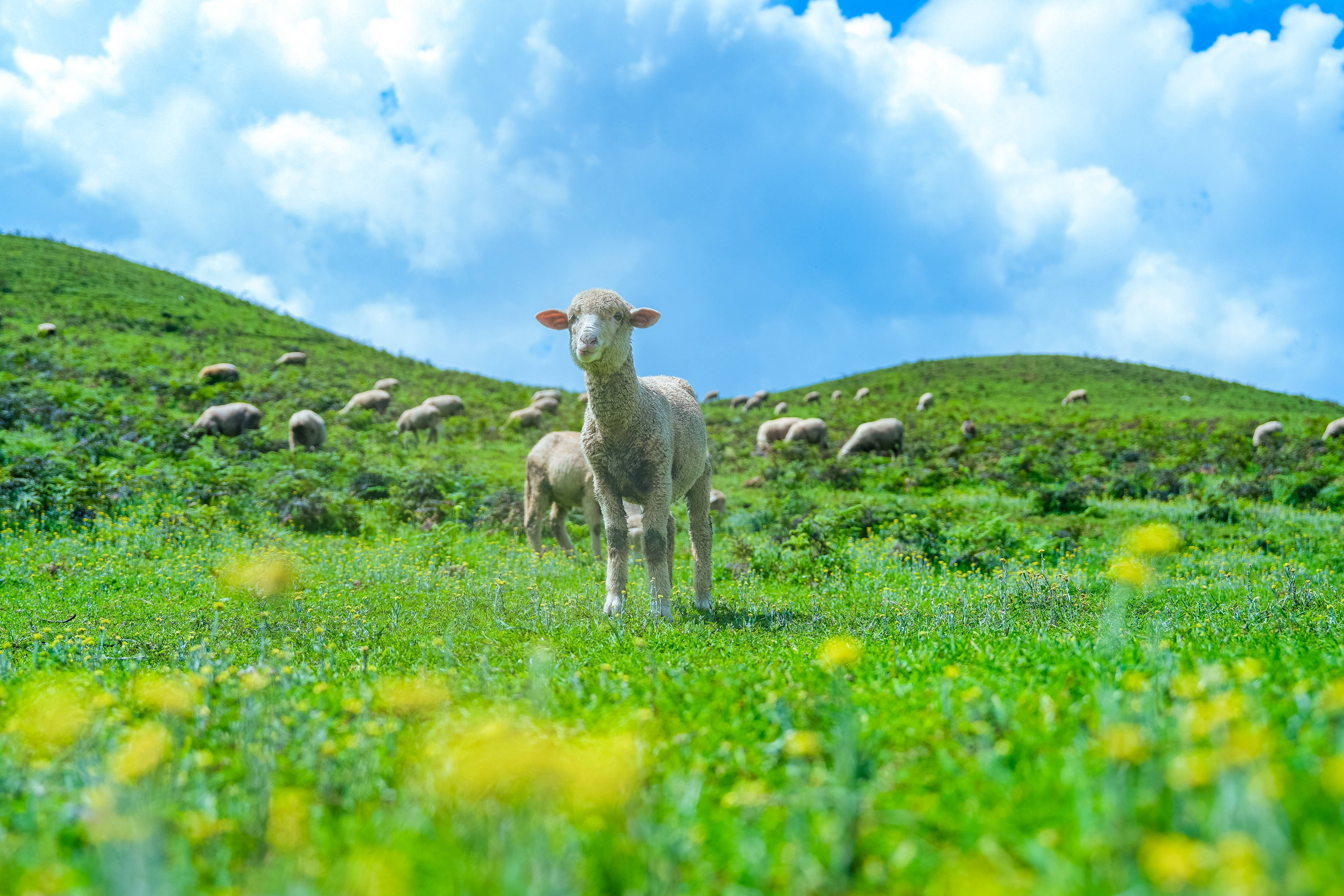 云南省寻甸回族彝族自治县四哨草场,遍野的小黄花攒着劲儿盛开,小羊们时而轻轻颤动耳朵,低头吃草,时而抬头看云。(云南省寻甸回族彝族自治县纪委监委供 徐俊 摄)