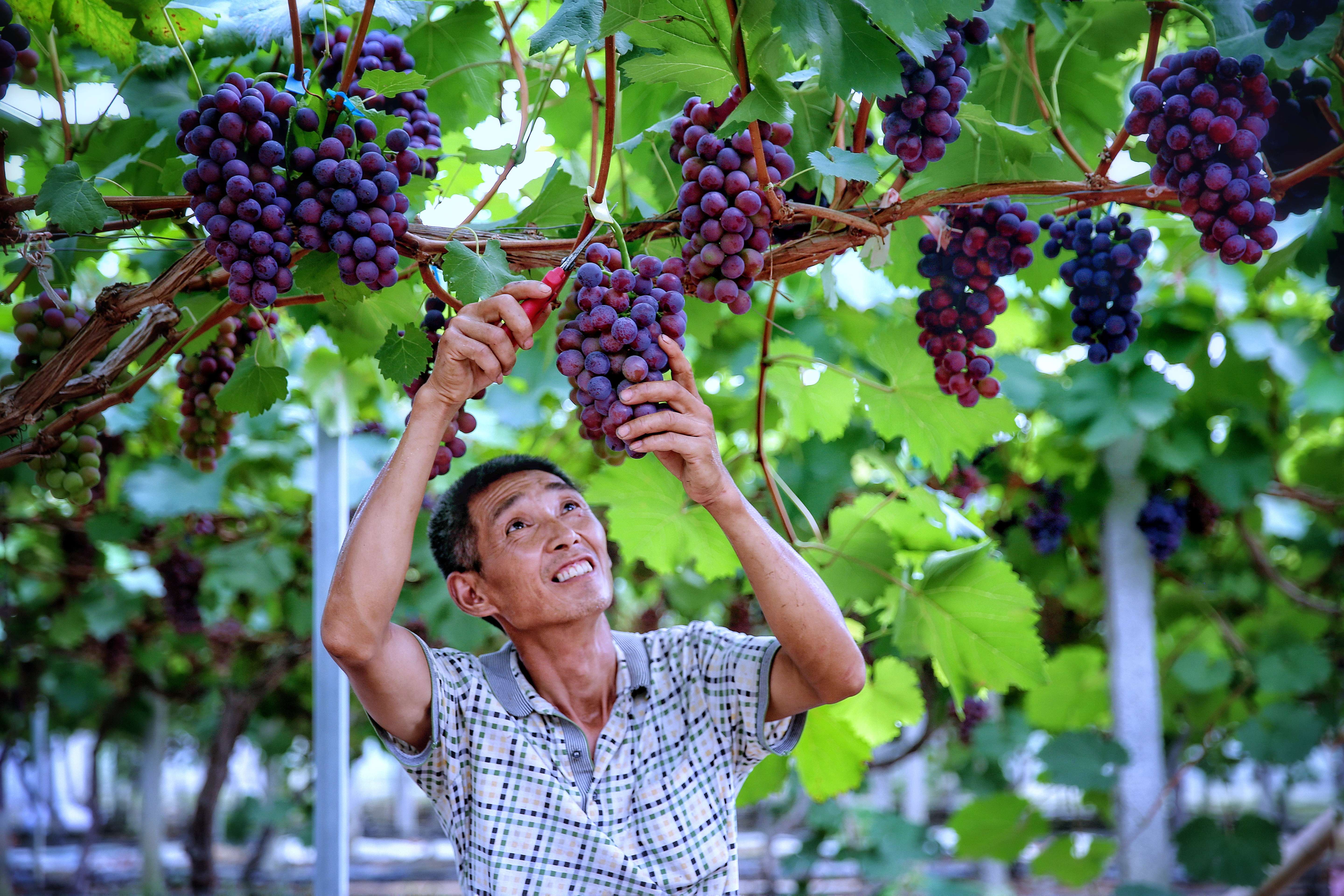 白露时节,浙江省杭州市富阳区东洲葡萄园迎来末茬采摘。果农们满怀丰收的喜悦,在园中采摘果实。(浙江省杭州市富阳区纪委监委供 李治钢 摄)