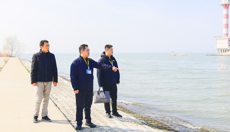 图为胡安阳(中)在巢湖入湖口肥东段实地查看水环境治理情况。曹国栋 摄
