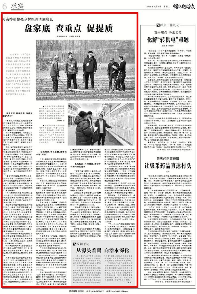 农村集体“三资”是全面推进乡村振兴的重要物质基础。2025年以来,河南纪检监察机关紧盯农村集体“三资”管理使用方面的突出问题,扎实开展整治工作,通过压实责任摸清底数、靶向监督严惩腐败、系统施治规范管理,推动农村集体“三资”管理更加规范有序、阳光透明,为守好村集体家底、夯实乡村振兴根基提供坚强纪法保障。