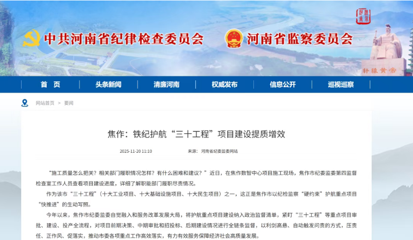 作为该市“三十工程”(十大工业项目、十大基础设施项目、十大民生项目)之一,这正是焦作市以纪检监察“硬约束”护航重点项目“快推进”的生动写照。