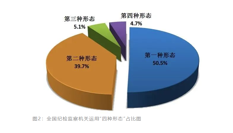 2026年第一季度,全国纪检监察机关运用“四种形态”批评教育和处理37.6万人次。其中,运用第一种形态批评教育和处理19万人次,占总人次的50.5%;运用第二种形态处理14.9万人次,占39.7%;运用第三种形态处理1.9万人次,占5.1%;运用第四种形态处理1.8万人次,占4.7%。