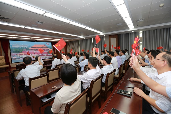 10月1日上午9时,焦作市纪委监委50余名纪检监察干部早早聚集于会议室,集中收看国庆阅兵式直播,一同欢庆国庆。阅兵仪式正式开始,同志们热血沸腾,心潮澎湃,挥舞起手中红旗,为祖国呐喊助威。