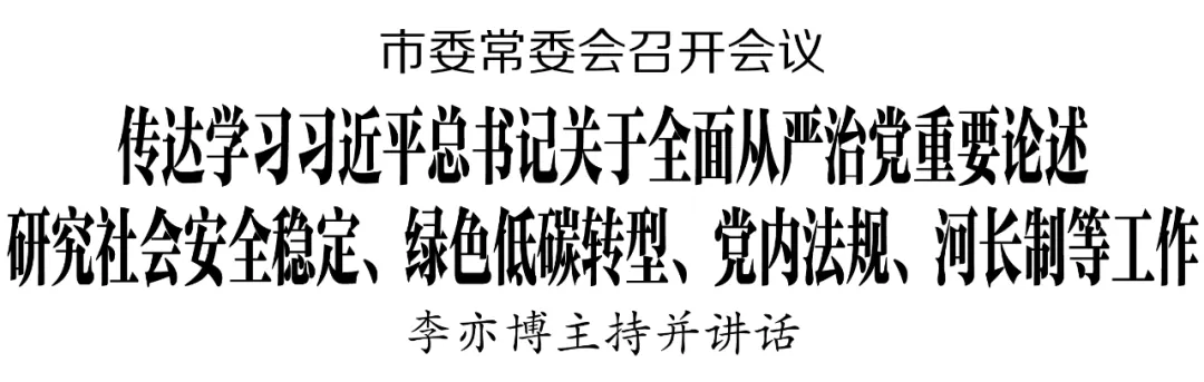 11月25日下午,市委常委会召开会议,传达学习习近平总书记近期关于全面从严治党的重要论述,研究部署社会安全稳定、绿色低碳转型、党内法规、河长制等工作。市委书记李亦博主持会议并讲话。