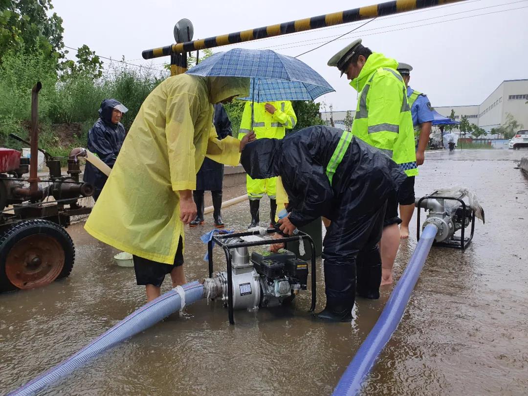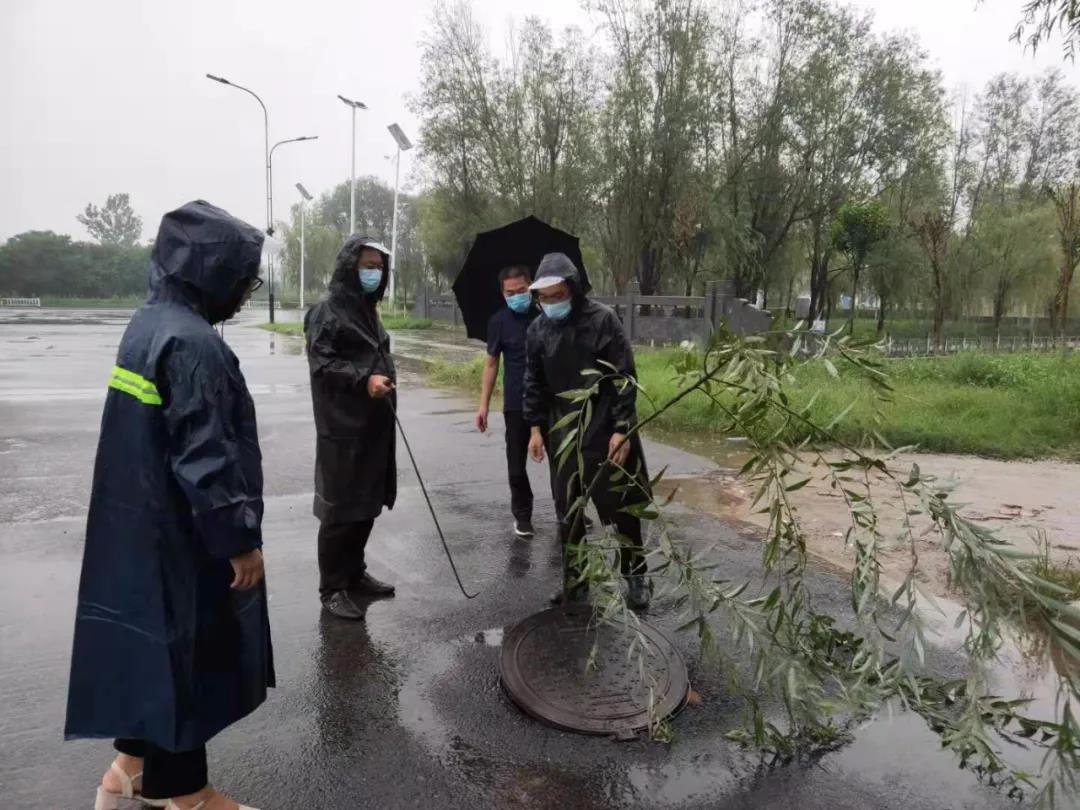 示范区杏花营街道提前备战汛情,准备防汛物资。图为杏花营办事处纪检监察干部在五大街涵洞出现积水时,积极带领社区干部到积水点抽水,确保人民群众生命安全。(李明明 摄)