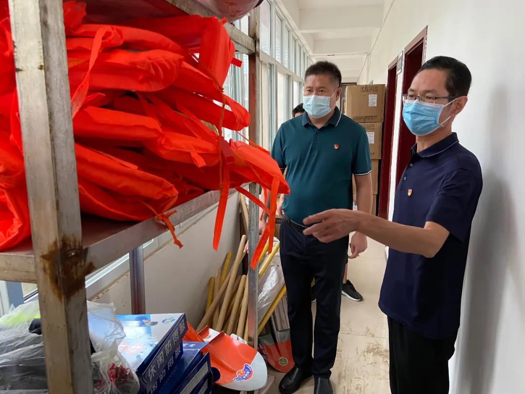 图为驻市卫健委纪检监察组在市第二中医院监督检查防汛救灾物资储备情况。(麻森 摄)