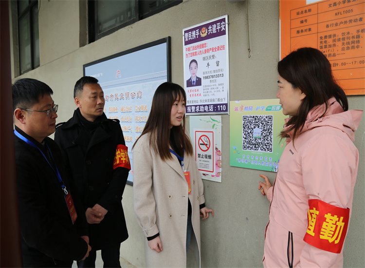 龙亭区纪委监委围绕“护学通”扫码入校情况,组织纪检监察干部深入学校一线走访,监督护航义务教育均衡发展,图为该区纪检监察干部到文昌小学了解相关情况。(李雪瑶 摄)