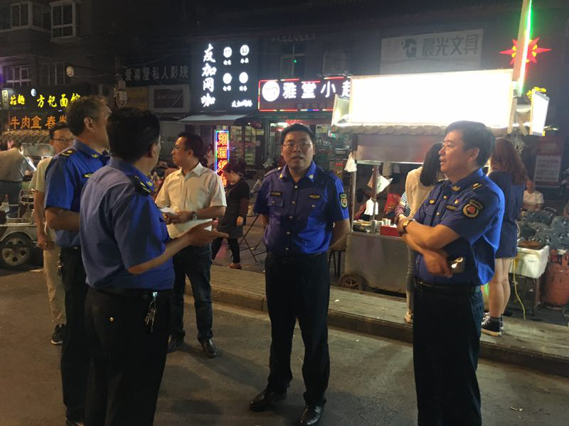 6月17日晚,市城管局党组书记、局长孔羽、驻局纪检组长常景全带领驻局纪检组、城市管理执法支队、市环卫局、市数字化监督指挥中心等相关单位,对市区占道经营、店外经营、露天烧烤、油烟治理等环境卫生问题,进行明查暗访,着力督导检查,市容环境卫生保洁、公共秩序和各区城管执法人员在岗履职、是否存在不作为、慢作为等现象。