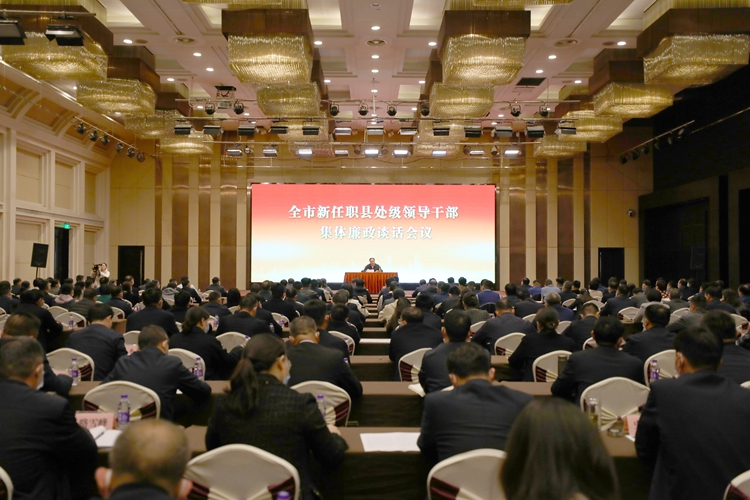 全市2022年以来新任职县处级领导干部参加会议,集体观看了以案促改警示教育片《激浊扬清》。(记者 雷宇 摄影 杨沛欣)