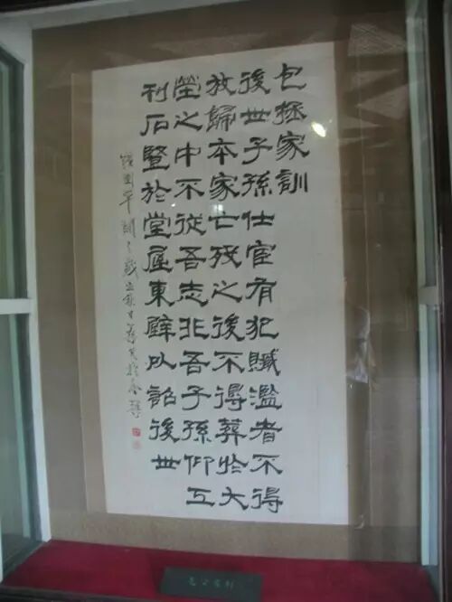 他亲笔写了一则著名的《家训》:“后世子孙仕宦有犯赃滥者,不得放归本家;亡殁(mo)之后,不得葬于大茔(ying)之中。不从吾志 ,非吾子孙。”共有37个字。其意思为,包家后世子孙当官,如有贪赃枉法者,开除族籍,不准再回包家;死后也不准葬入包家祖坟。不遵从包拯此训,包拯就不承认他们是自己的子孙。这在封建时代,是十分严厉的家法。包拯还嘱家人请工匠,把这则《家训》刻在石碑上,竖立在堂屋东壁。昭德塞违,垂照后世。现在,我们还可以在合肥包公墓的墓碑上面,清楚的看到这几行震慑人心的碑文,包公祠内保存着碑文拓片。