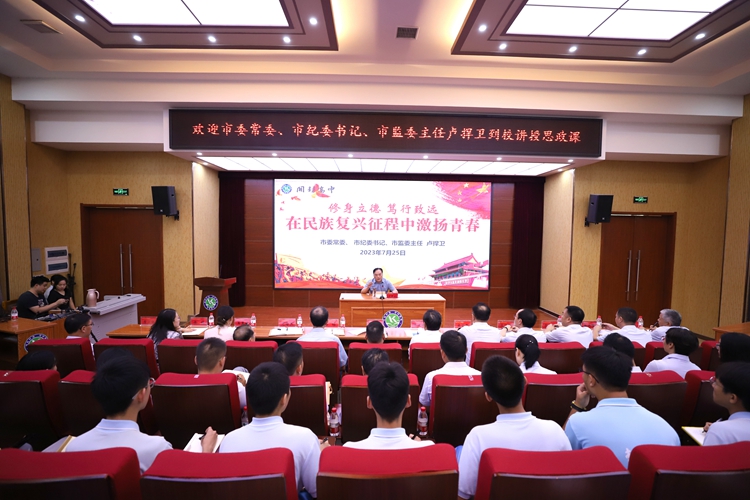 7月25日,市委常委、市纪委书记、市监委主任卢捍卫来到开封高中,以《修身立德 笃行致远 在民族复兴征程中激扬青春》为题,为广大师生上一堂别开生面、意义深远的思政课。