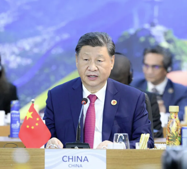 当地时间11月18日上午,国家主席习近平在巴西里约热内卢出席二十国集团领导人第十九次峰会。在峰会第一阶段围绕“抗击饥饿与贫困”议题讨论时,习近平发表题为《建设一个共同发展的公正世界》的重要讲话。新华社记者 李学仁 摄