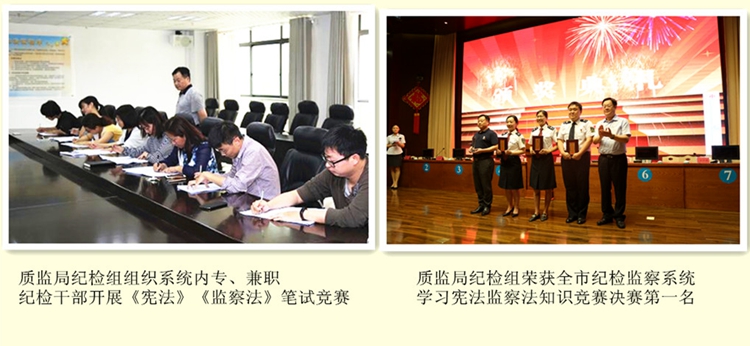 二是积极参与竞赛。组织质监系统专兼职纪检干部开展宪法、监察法竞赛活动,并精心选拔三名优秀选手积极参与全市纪检监察系统组织的宪法监察法知识竞赛活动,通过多次集中培训、模拟演练,扎实准备,一举荣获了全市纪检监察系统学习宪法监察法知识竞赛决赛的第一名。