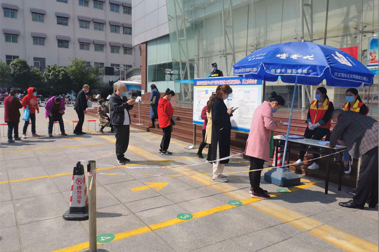 恰逢周一,正直恢复窗口服务首日,来到黄山路大厅办理业务的群众格外多,为避免人员密集、减低疫情风险,市行政服务中心认真落实疫情防控要求,对前来办事的群众采取“室外排队、叫号进入、大厅办理”的模式,控制室内人员密度,并在室外等候区设置咨询台提供咨询服务,引导办事群众自觉排队、按号进入。