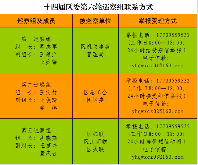 巡察期间,各巡察组均开通举报电话、电子信箱。