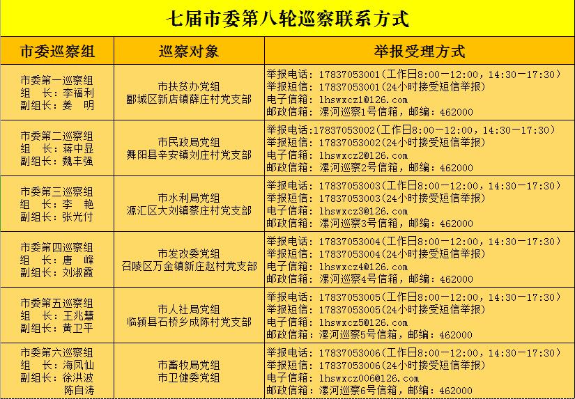 根据市委统一部署,市委6个巡察组于2019年3月中旬至4月下旬,分别对市发改委等6个单位党组和临颍县石桥乡成陈村等5个贫困村党支部开展脱贫攻坚专项巡察,并对市卫健委党组开展以脱贫攻坚为重点内容的巡察“回头看”。现将有关事项公告如下: