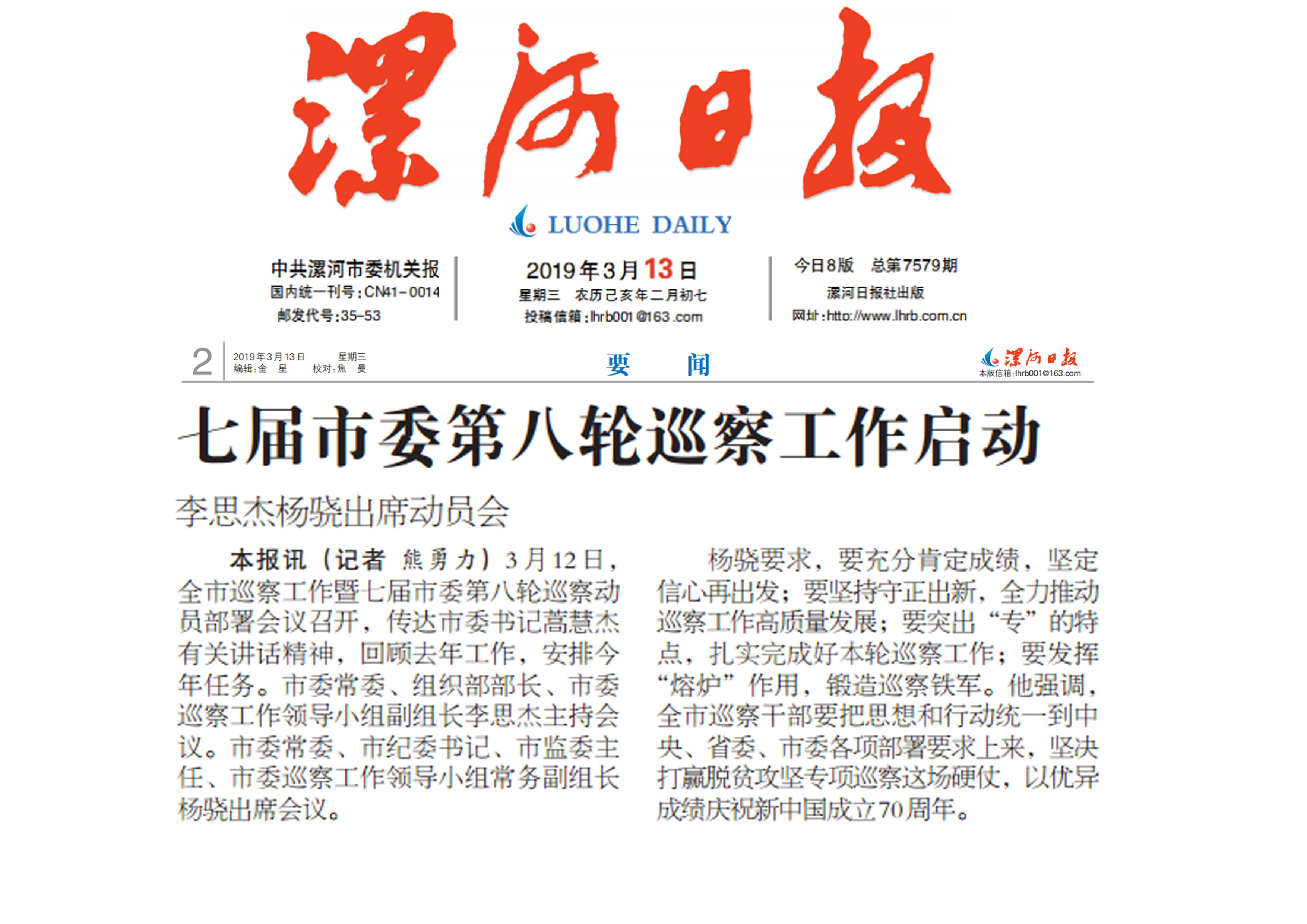 3月12日,全市巡察工作暨七届市委第八轮巡察动员部署会议召开,传达市委书记蒿慧杰有关讲话精神,回顾去年工作,安排今年任务。市委常委、组织部部长、市委巡察工作领导小组副组长李思杰主持会议。市委常委、市纪委书记、市监委主任、市委巡察工作领导小组常务副组长杨骁出席会议。