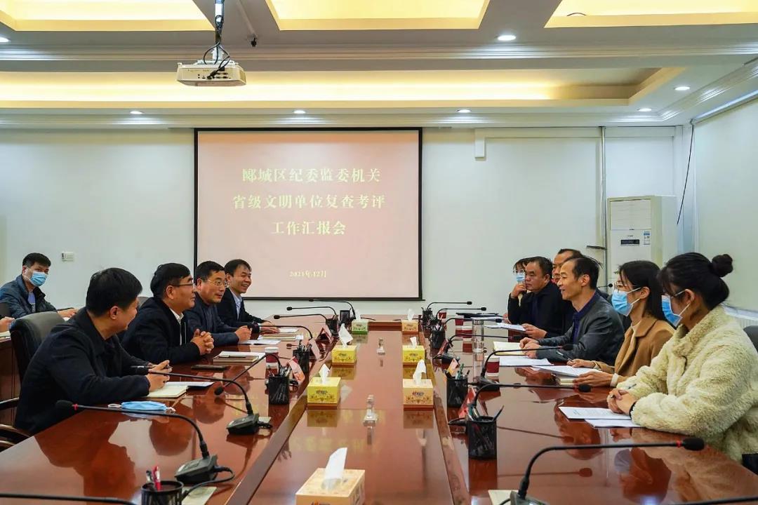12月3日上午,省级文明单位复查考评组赵阳一行5人,到区纪委监委机关开展2021年度省级文明单位复查考评工作。区委常委、区纪委书记、区监委主任何国旭陪同复查验收。