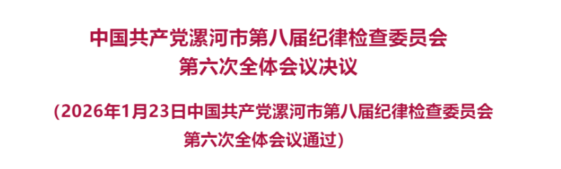 中国共产党漯河市第八届纪律检查委员会第六次全体会议,于2026年1月23日召开。出席全会的有市纪委委员31人,列席610人。