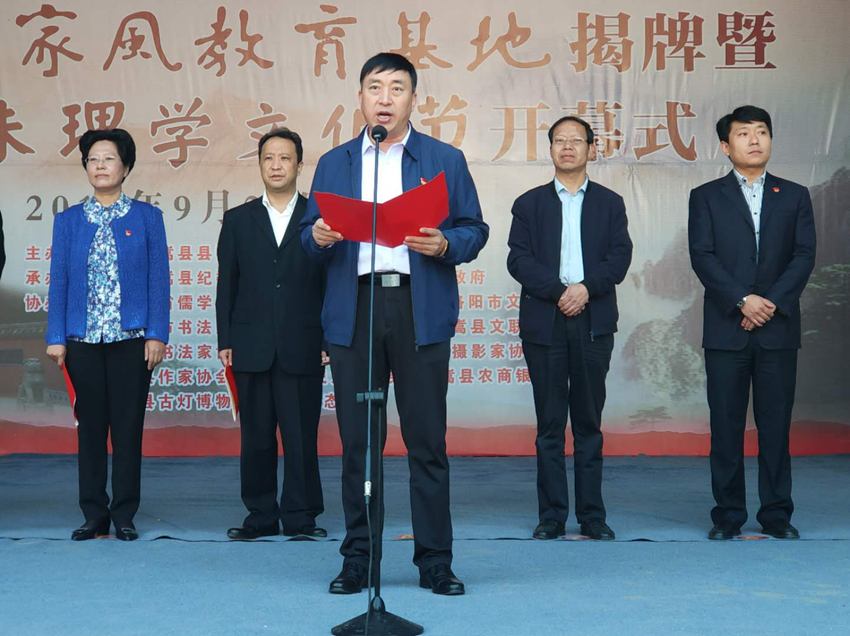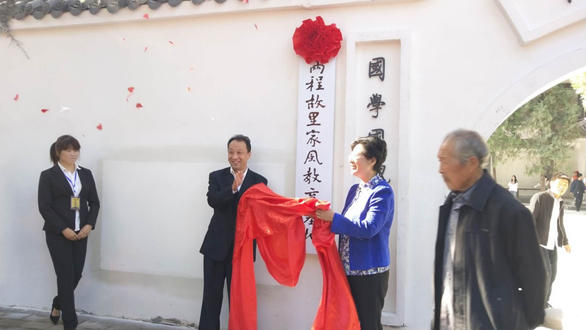 洛阳市纪委常委、秘书长白剑和县委副书记、县长宗玉红为两程故里家风教育基地揭牌