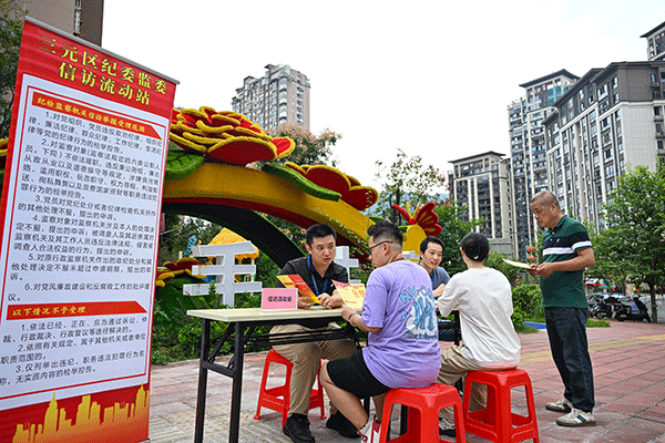 福建省三明市三元区纪委监委集中力量深入基层一线,收集问题线索,广泛宣传信访举报法规政策,引导党员、群众依规依法、理性有序地反映问题。图为该区纪检监察干部在三元区沪明社区开展流动接访活动。陈盛雄 摄