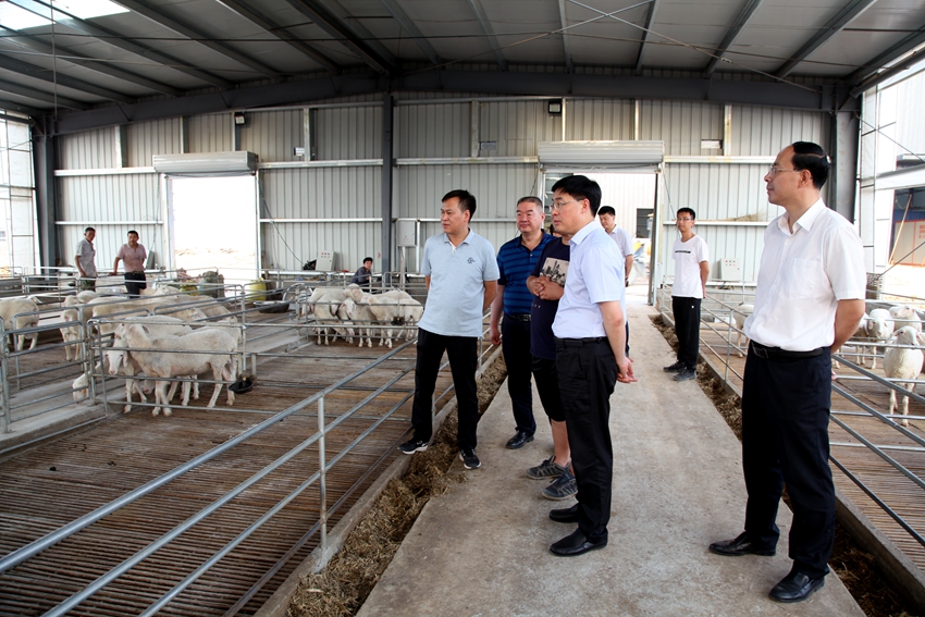 图为:赵会生到高沟村“澳湖一代”种羊养殖扶贫产业园调研