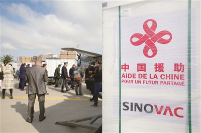 近日,中国援助的一批新冠疫苗运抵突尼斯迦太基国际机场。(图片来源:视觉中国)