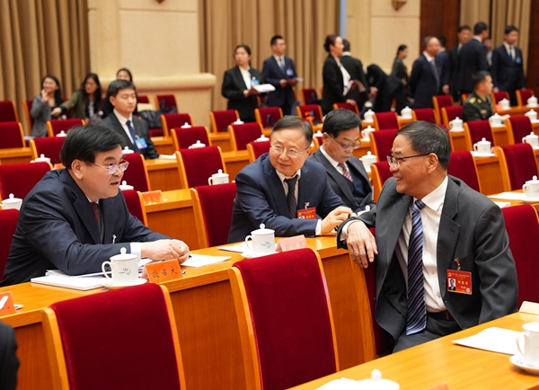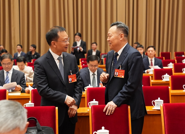 二十届中央纪委四次全会举行第二次大会,图为与会人员在会前进行交流讨论。中央纪委国家监委网站 张锐 摄