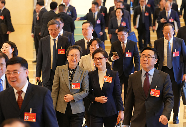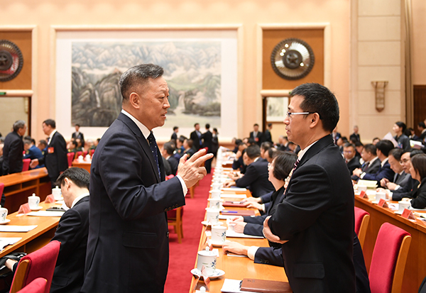 1月8日,二十届中央纪委四次全会举行第三次大会,图为与会人员在会前进行交流讨论。中央纪委国家监委网站 张梓健 摄