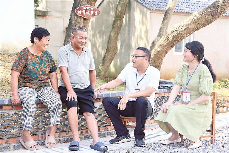安徽省郎溪县纪委监委紧盯落实上级决策部署不力,不担当不尽责、“新官不理旧账”等工作失职行为,组织纪检监察干部下沉一线,面对面倾听群众意见建议,推动解决问题。图为该县纪检监察干部在建平镇南东村向群众了解相关情况。唐媛 摄