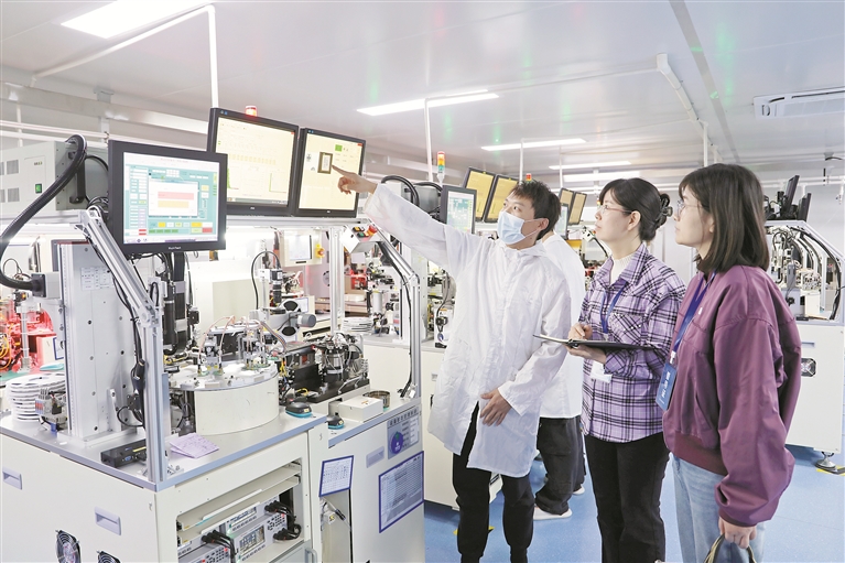 河南省登封市纪委监委聚焦涉企服务、制度执行、干部作风等关键环节,通过实地走访、座谈交流等方式倾听企业诉求、收集意见建议,为民营经济健康发展营造优良环境。图为该市纪检监察干部深入某电子芯片企业车间,了解职能部门服务企业情况。康春艳 摄