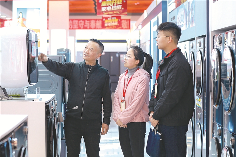 云南省陆良县纪委监委聚焦“两新”政策落地情况,组织纪检监察干部深入一线开展监督检查,严肃整治政策执行中的违纪违法行为。图为前不久,该县纪检监察干部实地走访某商场了解以旧换新补贴发放情况。陆子澄 摄