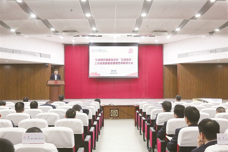林传伟案发生后,中国银行福建省分行坚持用“案中人”教育“身边人”,集中开展警示教育。图为该行警示教育大会现场。(驻中国银行纪检监察组供图)