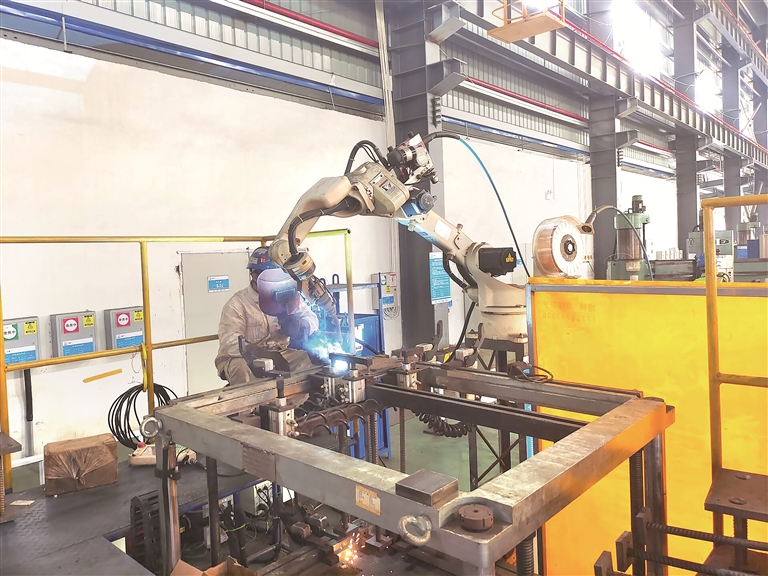 预制厂房内,焊接机器人正在进行埋件焊接作业。海南核电有限公司 供图